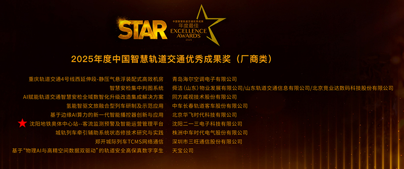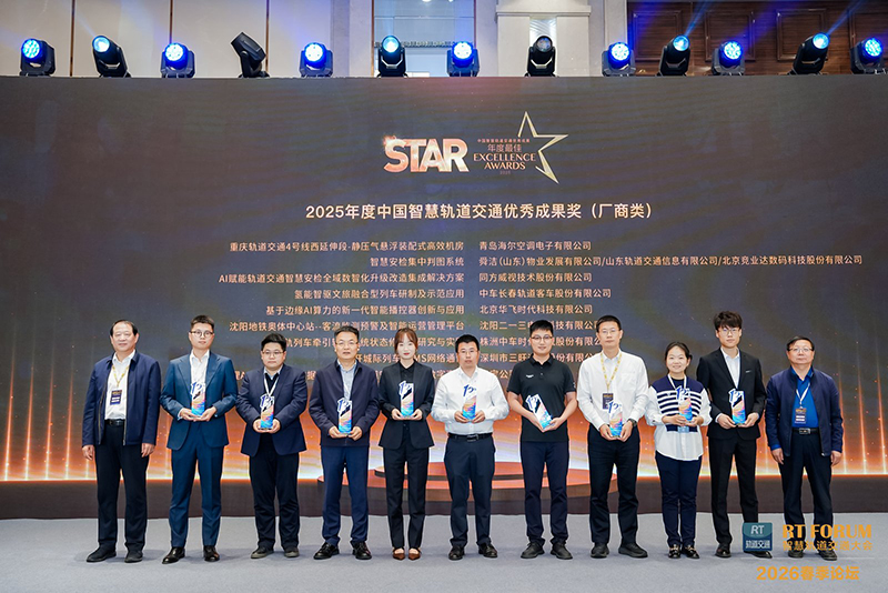 2026年4月9日-11日,“RT FORUM 2026 第十届中国智慧轨道交通大会”在上海举办。大会以“技术驱动,价值创造——开启城轨高质量发展新篇章”为主题。沈阳二一三电子科技携轨道交通创新技术亮相大会,在数智化与安全运营专题论坛发表演讲,凭借客流监测预警及智能运营管理平台荣获 “2025 年度中国智慧轨道交通优秀成果奖”。